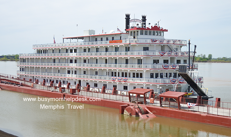 We had heard that if you take Beale Street all the way to the end, there’s a play area for kids. There was! While the kids ran off their energy before hopping back in the car, I checked out the Mississippi River and discovered that the Delta Queen was in dock.